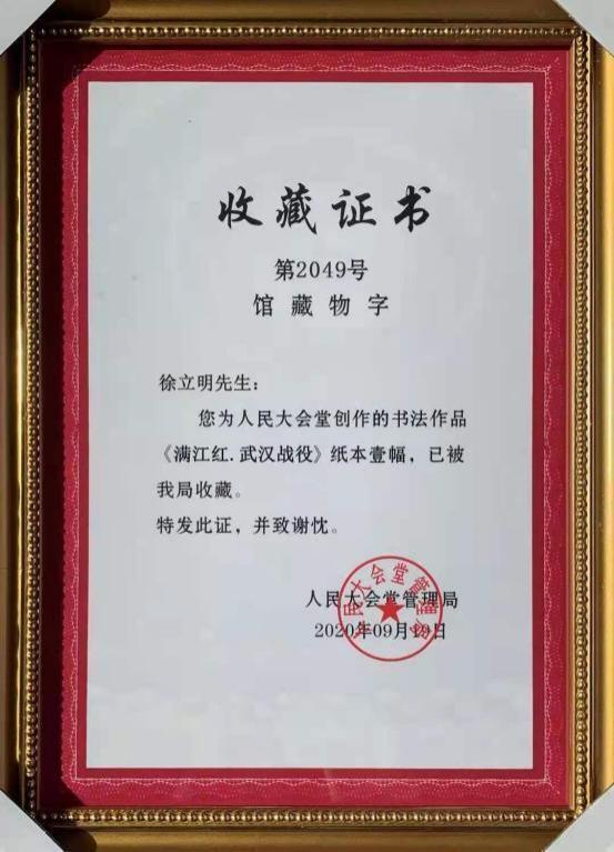 有名书法大师及高级书法教授荣誉称号。2014 年徐立明先生创作的另一毛体书法长卷荣