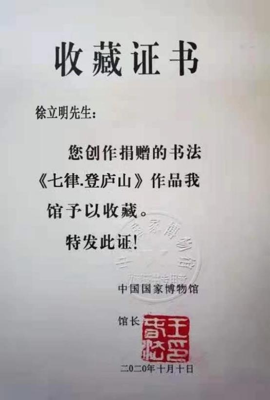 传统文化促进会艺术委员会艺术总监;同年 5 月,由央媒在全国推选书法名家,徐立明主